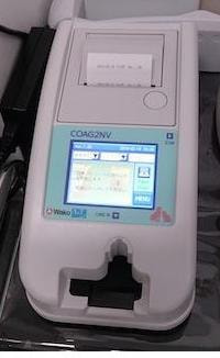 血液の凝固作用を測定するマシンです。安全に手術を行うために術前検査に使う事があります。