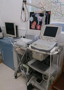 診察台を設置してあるので、色々な処置も行います。(写真は旧病院です)