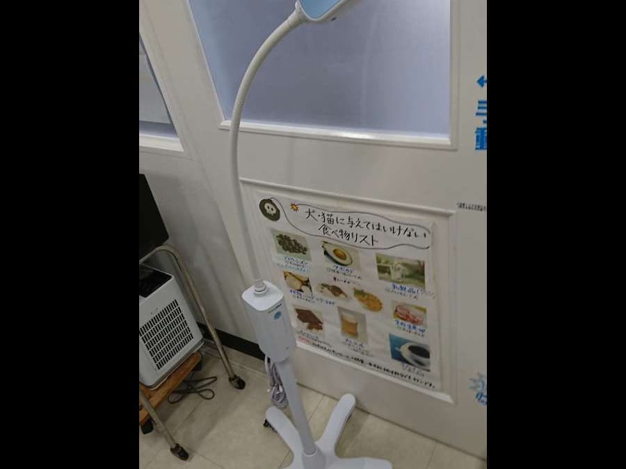| 入院関係 | 動物用ICUユニット/フクダM-E DearM10、酸素発生機2台、ポータブル酸素発生機、超音波ネブライザーNE-U17(2台)、小型ネブライザー/トップ製2台 |