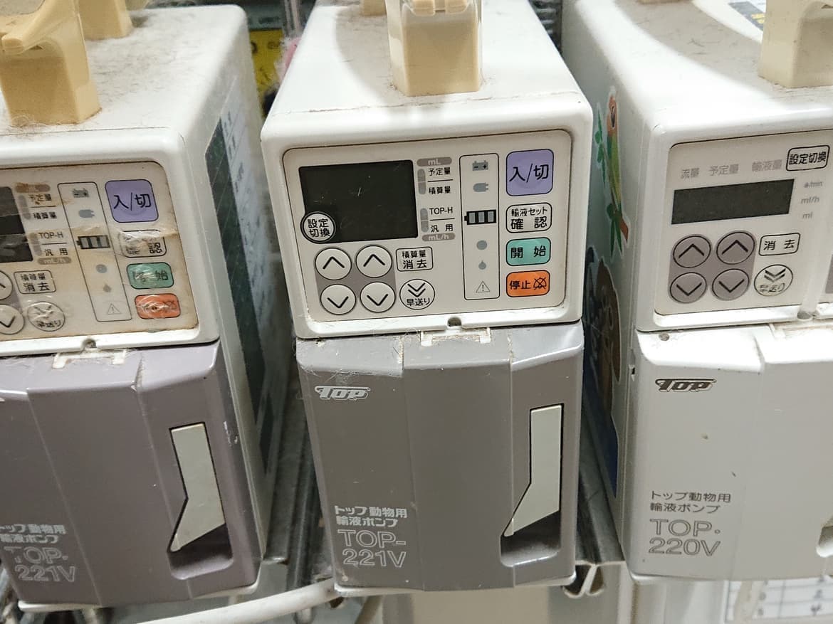 | 点滴関係 | トップ動物用輸液ポンプ TOP-230VAが4台、TOP-221Vが2台、TOP-220Vが3台、JMS/OT-701が3台、その他4台 シリンジポンプ TOP-551VCが1台、TOP-5300が3台 |