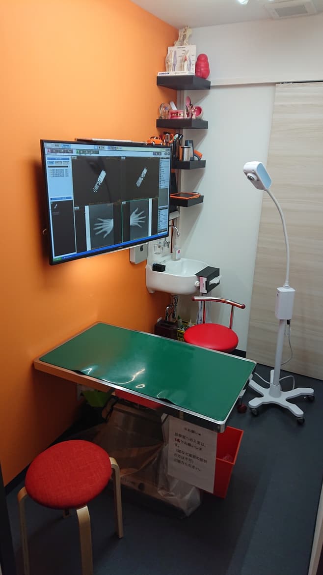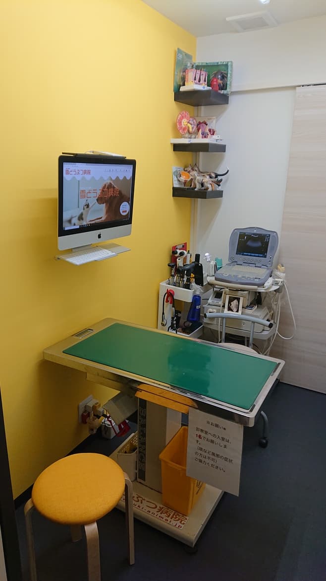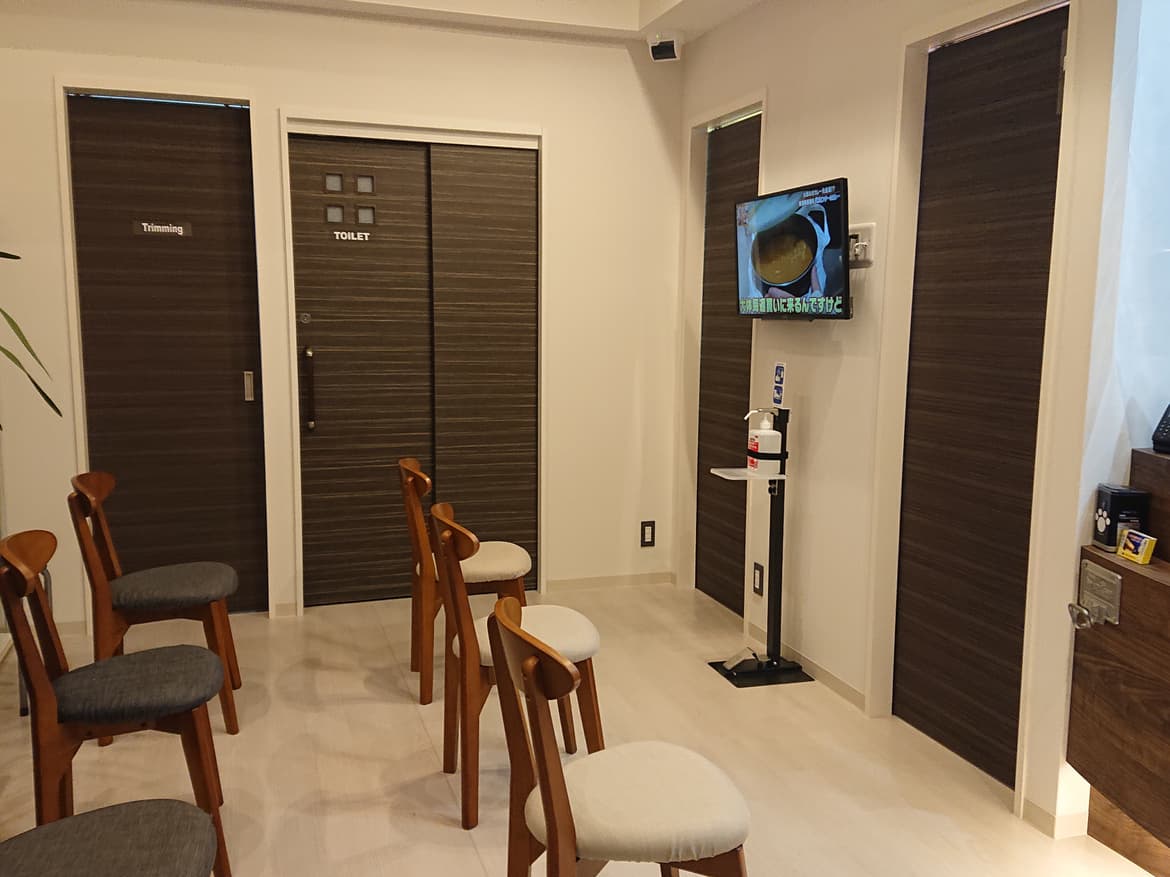 | 受付・待合室 | iPadレジシステム4台、レシートプリンター3台、診察順番メールお呼び出しシステム(AirWait)、クレジットカード&電子マネー支払いシステム2台、待合室業務用大型プラズマクラスター2台、大型液晶テレビ、壁掛けテレビ、大型フォトフレーム、バーチャル水槽システム、待合室動物用体重計など |