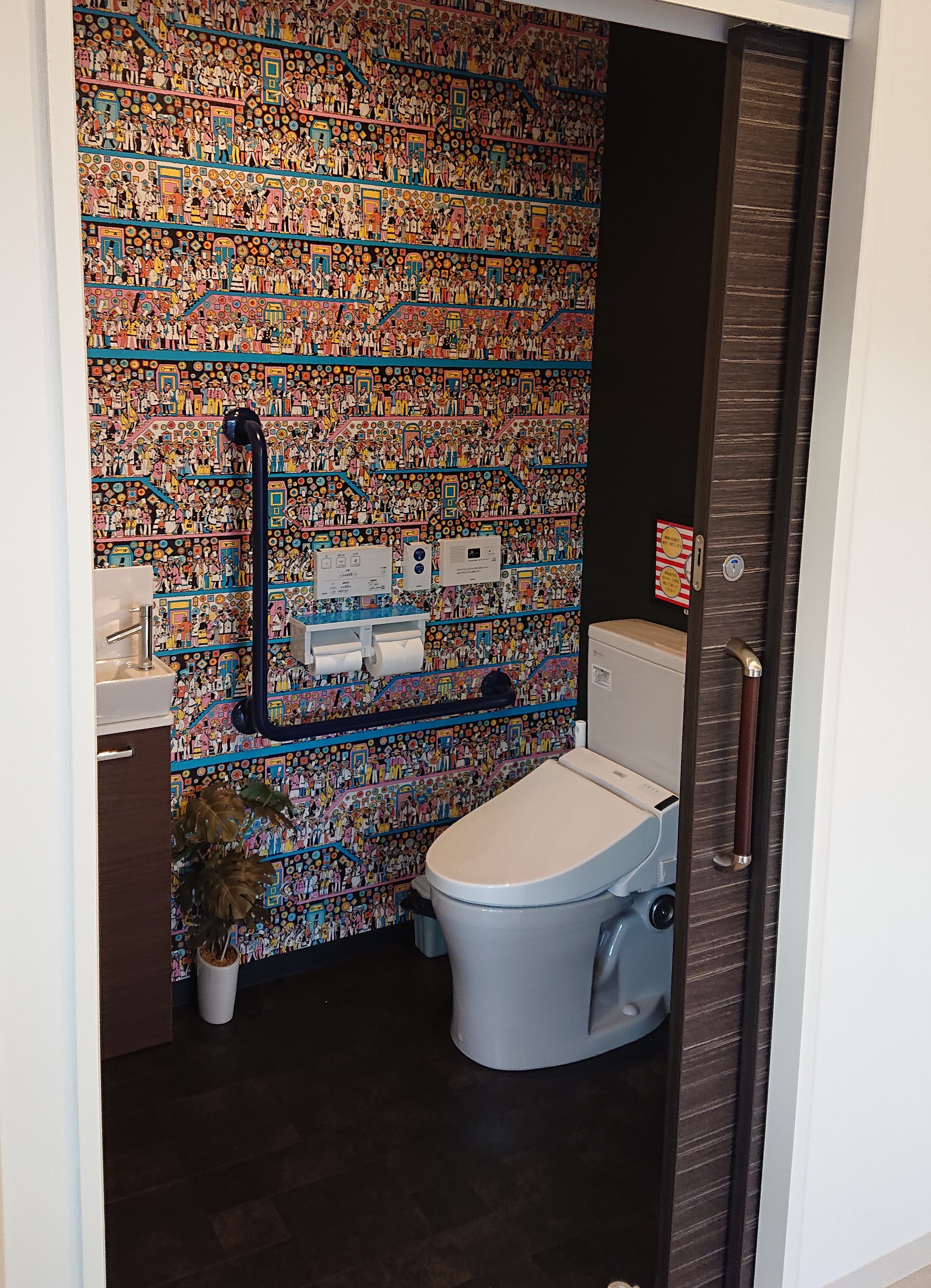 ベビーカー、車椅子が入れるトイレスペースにしました。