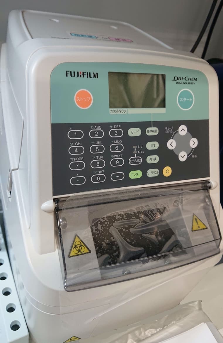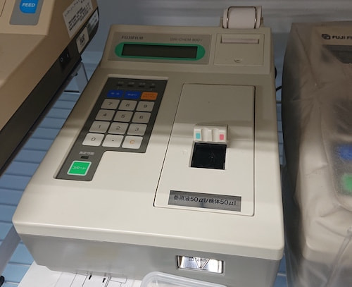 腎臓、肝臓などの血液生化学を測定する器械です。