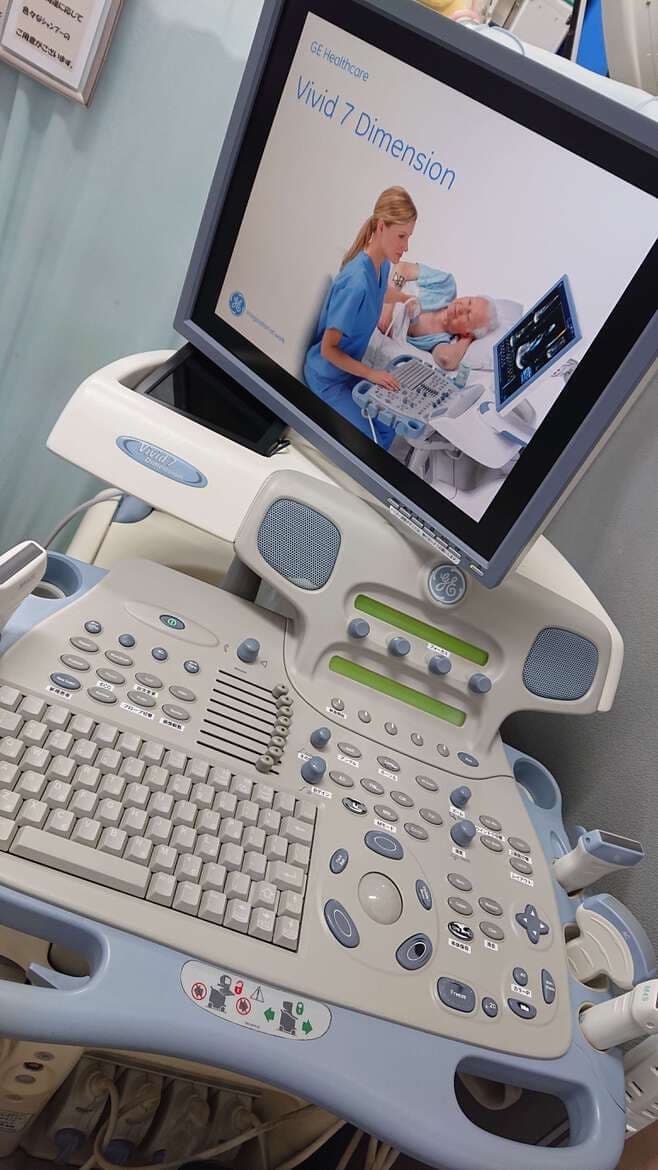 カラーエコーが設置してありますので、こちらで超音波検査を行います。