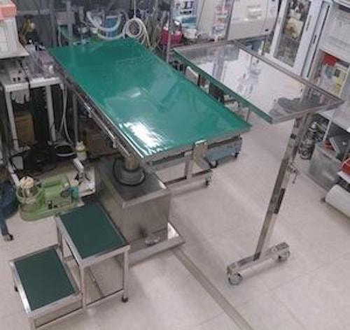 こちらで手術を行います。専用手術台、麻酔モニター関係、手術関係の器具を揃えてあります。 (写真は旧病院です)